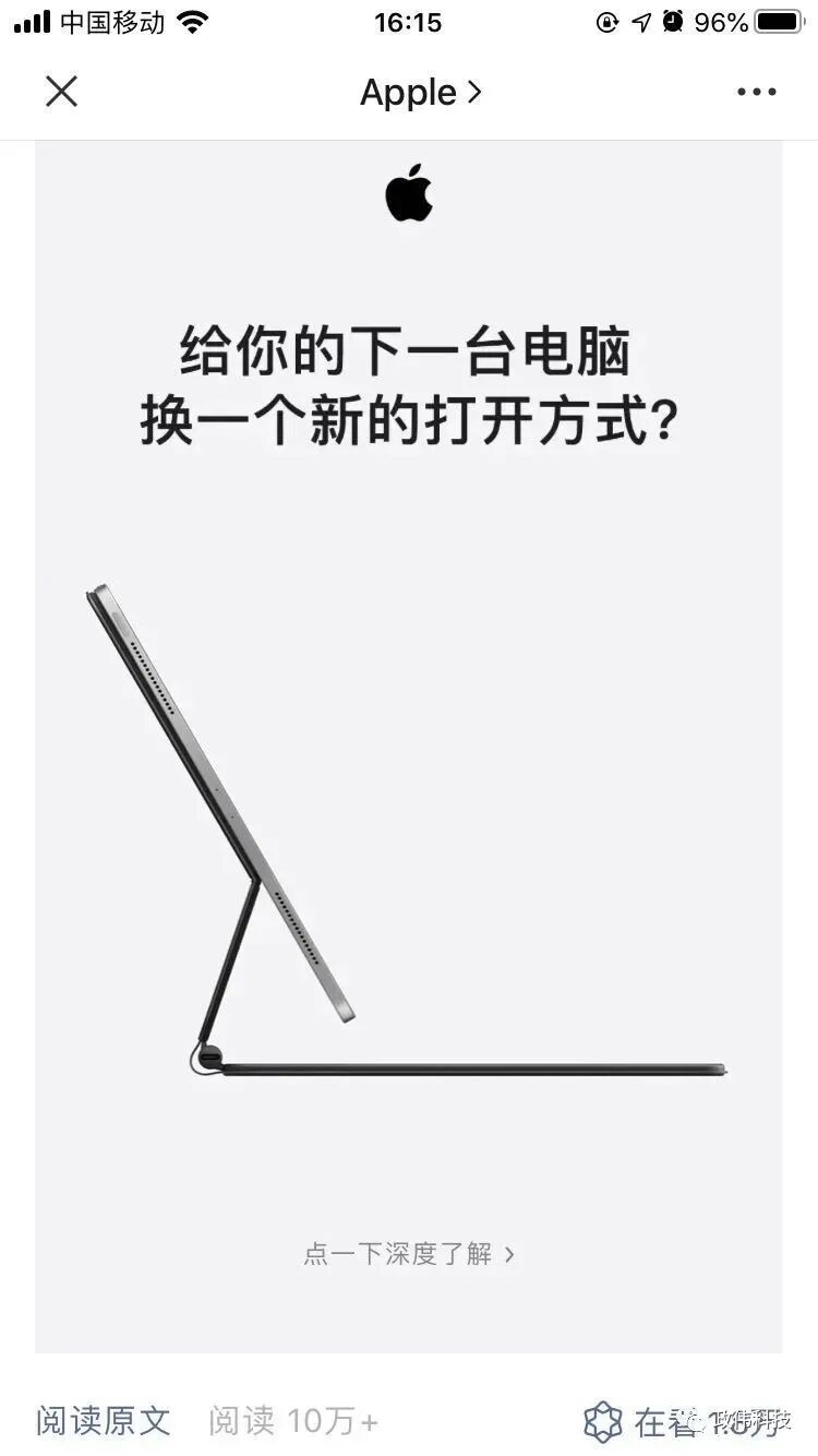 但zui近似乎又有一些新的变化,比如微信iOS的深色模式,比如苹果的公众号上周推送的推文挺火的,并且已经看到有品 牌开始模仿这种形式。